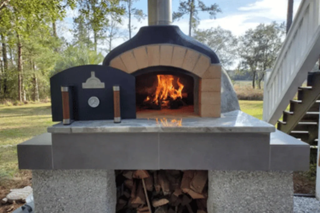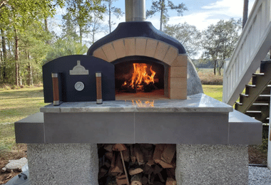The D105 PreCut Brick Oven is our most popular and highly recommended kit, designed to bring authentic Italian-style wood-fired cooking to your home. With an internal diameter of 41.3″, it’s spacious enough to satisfy even the largest families, capable of baking five pizzas at once—or up to eight if you’re skilled with a pizza peel. But it doesn’t stop at pizza: fresh sourdough bread, slow-roasted meats, and perfectly seared steaks all benefit from the unique flavor only wood fire can deliver. What truly sets the D105 apart is its incredible thermal mass—nearly 2,200 lbs of dense refractory fire brick wrapped in efficient insulation. Once fired, it takes about 2.5 hours to reach 750°F and retains heat so well that it stays above 160°F for up to 72 hours, offering unmatched performance for versatile cooking.